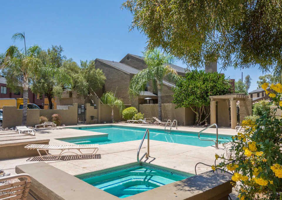 Spacious 1,431 SQFT renovated Central Tucson condo with a 2 car garage. This charming 3BR condo is conveniently located just off of the Mountain Ave bike path and features an open floor plan, high ceilings, kitchen with granite counters and stainless steel appliances, ceramic tile flooring, murphy bed, flagstone patio, cabinets in garage and a pool and spa.