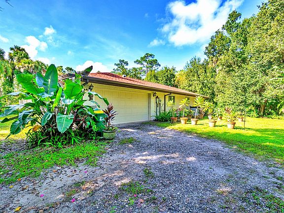 Wonderful 3 bedroom 2 bath pool home with 2-car garage on over 5 acres! Surrounded by wilderness and accessed by a private drive, this property provides the unique combination of seclusion while still being close to civilization. Features include a NEW roof, NEW plantation shutters, double-pane windows with hurricane shutters, split-bedroom floor plan, not located in a flood zone and on city water. At over 2,500 sqft of living space, there's plenty of room for entertaining; from the formal living and dining rooms, family room and eat-in kitchen, to the tranquil front porch with arches. Relax under the screen and covered wraparound back patio after taking a dip in the gorgeous 4-year-old pool and spa. Master suite boasts his and hers walk-in closets, double sink vanity and jetted tub.