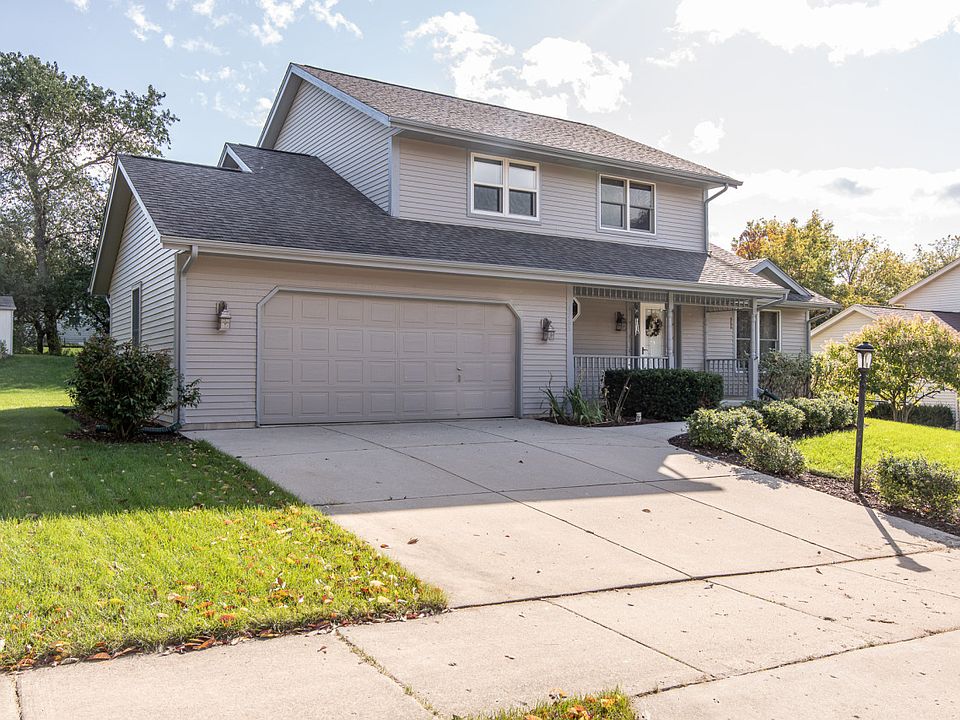 Freshly painted inside and out! A cheery front porch welcomes you into this well-kept colonial. The living room offers space for movie night or entertaining. A stone fireplace adds a warm touch to the family room. Kitchen has been recently updated for today's style with cabinetry, appliances, and quartz countertops. The half bath has been updated with a granite counter. The main bedroom features double closets and a private bath with granite counter. In the lower level, you will find a bonus room with newer carpet, perfect for crafts or home office. Great storage space too. There is lots of room in the back yard for fun and games and a shed to house the gear. Home warranty will give you piece of mind. Located close to shopping and parks and schools.