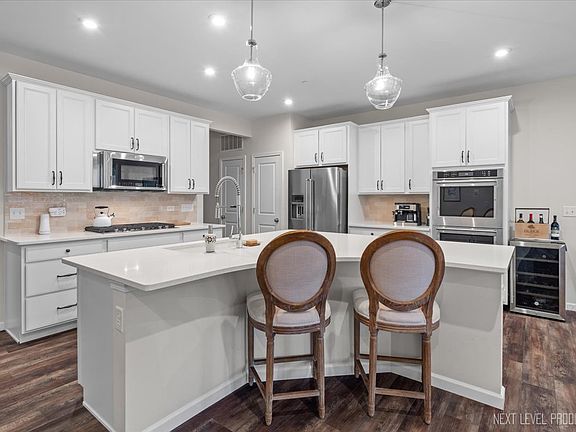 IMPRESSIVE PROPERTY WITH INCREDIBLE LOCATION! Every inch of this extraordinary 3-bedroom PLUS 3rd floor LOFT, 2.1 bath residence exudes luxury, comfort and impeccable style. Built in 2022 and offering 2,474 sq ft of beautifully curated living space, this home feels professionally designed from top to bottom. Stepping inside you will find an open, light-filled layout where every detail has been thoughtfully chosen. The gourmet kitchen is a showstopper, featuring high-end stainless steel appliances - including a double oven - complemented by gleaming quartz countertops, a large undermount sink, designer tile backsplash, spacious island for gathering, an abundance of white shaker style cabinets and a spacious pantry. Just off the kitchen, a well-planned mudroom with built-in lockers adds both function and charm. The main living spaces flow effortlessly: light-filled family room, charming dining area and the most darling sitting area/sun room - Throughout the home there are custom window treatments, updated lighting and tasteful finishes that create an inviting & sophisticated atmosphere. Upstairs, there are three generously sized bedrooms with amazing closet space and great natural light. The primary suite is spectacular: Unbelievable walk-in closet with custom built organizers, double sinks, spacious shower and soaking tub. There is a versatile 3rd floor loft that offers the perfect balance of retreat and flexibility - ideal for a home office, den, or creative space. Off of the loft you step out onto your own private outdoor deck providing the perfect spot to relax or entertain. Thoughtful upgrades that instantly elevate the space are: cat 6 hi speed wifi throughout home, whole house built-in surround sound speakers, high-end appliances & cabinets, security system, rod iron spindles & luxury vinyl plank flooring (LVP). The property overlooks a peaceful retention pond, providing a serene backdrop and views from every window. The deep pour unfinished basement provides ample storage or excellent potential for finishing off the space. With newer Lennox HVAC, sump pump, and electrical systems, this property offers modern peace of mind along with its stunning aesthetic. The location of this townhome is appealing with its extremely close proximity to interstate 88, 10 min drive to downtown Naperville, hop skip to Danada Square, and quick trip to schools and park district facilities. This is not just a home - it's a statement of style and quality. Every room tells a story of thoughtful design, timeless materials, and elegant living in one of Naperville's most desirable locations. * home has been freshly painted *Simplisafe Security System can convey