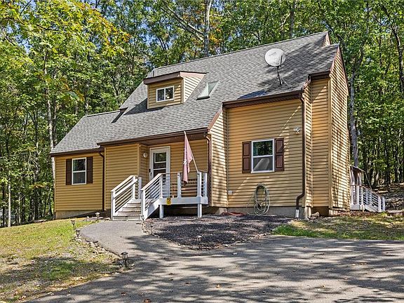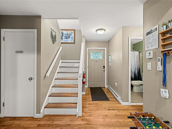**H&B due 9/30 @9am This stunning modern home offers endless possibilities—whether you're looking for a profitable short-term rental, a serene vacation home, or the perfect primary residence. Currently an active STR, this property provides an exceptional open-concept living space designed for comfort and entertaining. Upon entering, you'll be welcomed by a spacious Living Room featuring vaulted ceilings, a cozy brick Fireplace, and new mini split system, perfect for relaxation. The Dining Area, located just off the Living Room, includes sliding doors that lead to a large Deck, offering an ideal spot for outdoor gatherings. Step outside to find a luxurious hot tub and plenty of seating, surrounded by a beautiful outdoor entertaining space that blends seamlessly with nature. The Kitchen, a true chef's delight, boasts stainless steel appliances, granite countertops, and an open layout, making it easy to entertain while preparing meals. The first floor also offers two generously sized Bedrooms and a full Bathroom, providing comfort and convenience for residents and guests alike.Upstairs, you'll discover a versatile Loft area, complete with a pool table, overlooking the main Living Area. Adjacent to the Loft is a private Bedroom with vaulted ceilings, a skylight that bathes the room in natural light, and a half Bath. Located in the amenity-filled Penn Estates community