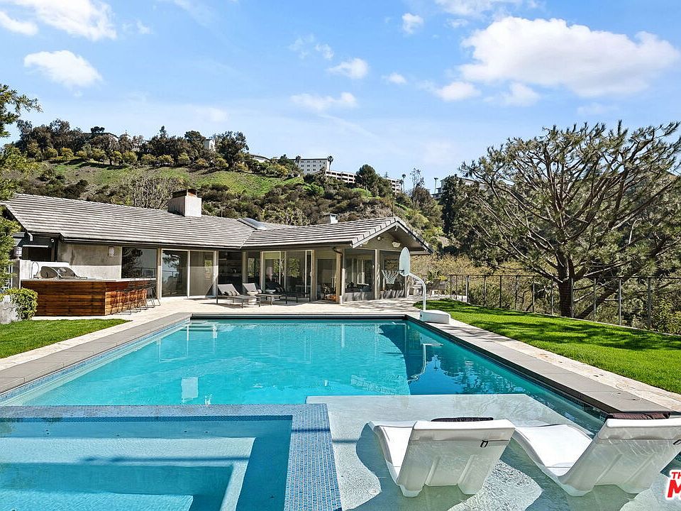 Perched above Sunset Boulevard, this reimagined Brentwood estate offers a rare balance of serenity and sophistication. Set on over an acre of grounds, the residence unfolds across nearly 6,000 sq ft with 6 bedrooms and 7 baths, all enhanced by a 2012 renovation that introduced modern finishes and an airy open plan. Floor-to-ceiling windows frame lush hillside vistas, while light-filled interiors showcase contemporary fireplaces and seamless indoor-outdoor living. The chef's kitchen, designed with quartz counters, custom cabinetry, and premium appliances, anchors the home with both beauty and function.Tailored for entertaining, the estate features a sleek indoor bar, a private theater with convertible guest suite, and an expansive backyard retreat complete with resort pool, cabana, outdoor kitchen, and professional putting green. Smart technology and thoughtful upgrades including solar power, EV charging, a natural gas generator, and water filtration add ease to everyday living. A true sanctuary in one of Los Angeles' most prestigious neighborhoods.