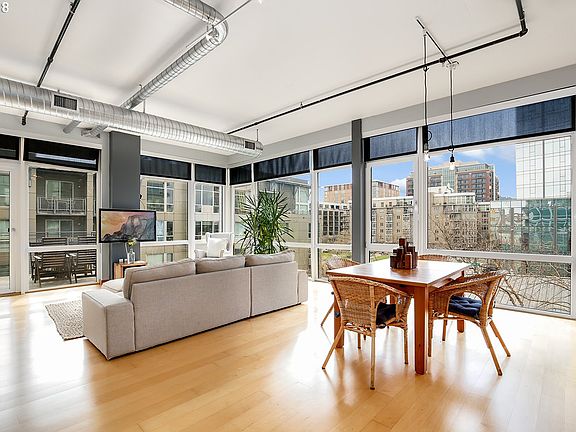 Fantastic open floor plan in this great corner one bedroom with views of Tanner Springs Park. Loft style living with floor to ceiling windows, maple floors and cabinetry. Spacious kitchen with SS appliances. Relax on the large patio and enjoy the views! Low HOA's. Deeded parking and storage unit included. Community rooftop deck on the 7th floor. Steps away from parks, great restaurants, shops, streetcar and the riverfront!