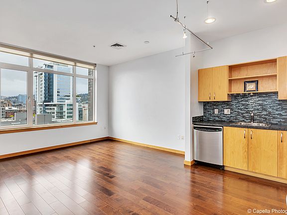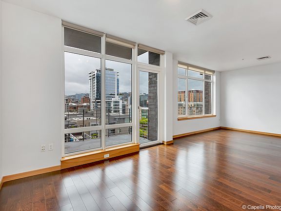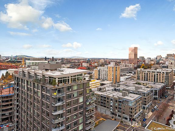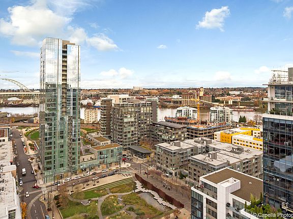 Enjoy the vibrant city and Tanner Springs Park view. Wonderful light and open floor plan with darling balcony perched out to the city. Hardwoods throughout, large bath with walk-in shower, high ceilings, large windows .Functional kitchen with designer tile, gas cook and stainless appliances. Great community with community deck on 7th floor. Wonderful location between two local parks and new Cooperative Market. Parking and storage included in sale.