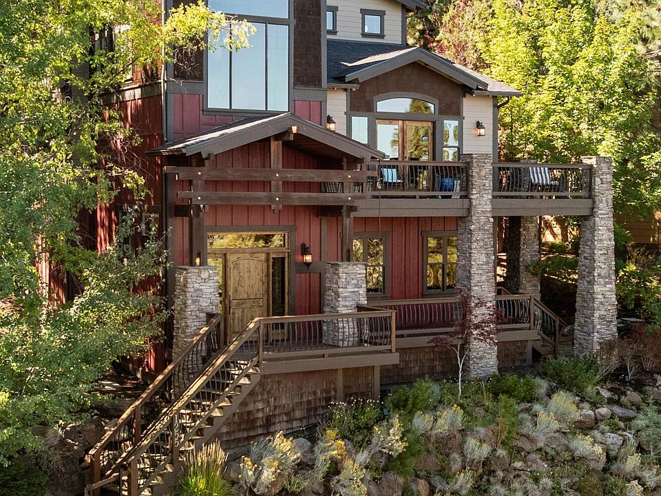 Experience refined Northwest living in this stunning 4-bedroom, 4.5-bath custom home, perfectly situated to capture breathtaking views from Mt. Jefferson to Smith Rock. Designed with timeless elegance and exceptional functionality, this home offers thoughtfully curated finishes and a spacious layout across three levels. The main floor welcomes you with a gourmet kitchen with custom cabinetry, a primary suite with access to the deck, and a sunlit living room—ideal for entertaining. Upstairs, you'll find three additional bedrooms and a versatile bonus room perfect for a playroom. The lower level provides additional space, including a dedicated office, a gym that could easily be transformed back into a home theater, a cozy family room, and two large storage rooms. Enjoy mature landscaping and low-maintenance grounds, plus a fully heated driveway leading into a 3 car garage.