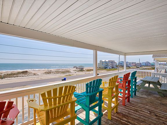 Enjoy unobstructed ocean and ICW views from this beautiful home in N Topsail. Private pool with Tiki bar and outdoor shower. Multiple decks to take in the views, watch the dolphins and relax on vacation. Kitchen remodel & new roof in 2019-2020. Hot water heater replaced end of '21. See documents for recent upgrades. This home has been a consistent money maker on the rental program. Projections for 2023 is $81,000. Hot tub has been removed.Don't miss your opportunity to own a slice of heaven!
