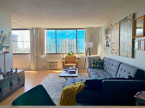 Come see the beautiful views in this updated 1 bedroom condo. Amazing views of downtown, mountains, and the ocean. Located right in the heart of Honolulu, within walking distances of restaurants, bars, and shopping. The unit has an open floor plan, LVP flooring, stainless steel appliances, two big closets, AC and 1 assigned parking. Building amenity features include a pool, park, bbq areas, and community laundry. Comes with a refrigerator, dishwasher, garbage disposal, and an oven/range. Rent includes water, sewer, basic cable, and internet.