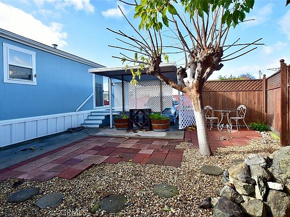Solution to affordable housing in SLO with low space rent and great home price! Lovely two-bedroom mobile home built in 2004. Step into the open living area with vaulted ceilings via a large glass slider which welcomes lots of fresh air and sunlight into the home. The kitchen features refrigerator, gas stove, microwave, stainless steel sink with reverse osmosis, solid wood cabinetry with Formica counters and tile backsplash, and attached breakfast bar. The dining area is open to the living room and kitchen. Laundry includes stack washer and dryer with an added pantry. The bedrooms are at opposite ends of the home for added privacy and both feature walk-in closets with extra shelving. There is a full bathroom with tub/shower enclosure. This lovely home is clean and ready to move right in with new interior paint, dual-pane windows, ceiling fans, nice light fixtures, and window coverings. Enjoy moderate San Luis Obispo weather with this large corner lot. The yard is fenced with a private garden-like setting. Nice carport with additional parking in front plus a storage shed. Super location near shopping, transportation, walking/biking paths, parks, hiking, and top-rated schools including SLO High School, Laguna Middle School, and Los Ranchos Elementary School. Colonial Manor Mobile Home Park is a well-maintained all-age park. A cat or small dog is allowed. Be sure to view 3D tour. These homes do not come up often; better hurry!