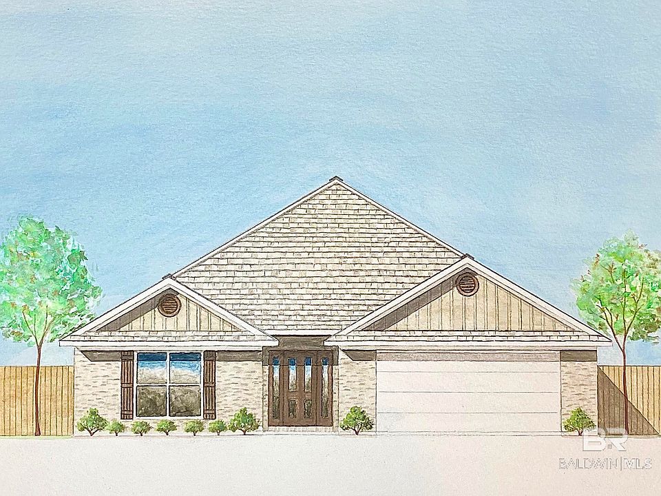 The spacious Bayberry plan offers an open concept with a split bedroom design. The welcoming foyer leads to the living room which features wood flooring, raised octagon ceiling, recessed lighting, and French Doors leading to a rear covered porch. The spacious kitchen highlights upgraded painted cabinets, granite counter tops, ceramic tile flooring, GE appliances, large pantry, and plenty of cabinet and counter top space. The primary suite comes complete with a full bath which includes an oversized soaking tub, separate shower with glass door, and dual vanities. More amenities to mention: Gold Fortified Construction, Fully Sodded Lawn, Double Garage with Automatic Door Opener, 9’ Ceilings Throughout, Wood Flooring throughout main living area, ceramic tile in wet areas, Manibloc Water System, Quality Home Builders Warranty, and much more!