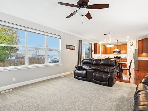 Move right into this stunning home, a perfect blend of modern luxury and classic charm. The sun-drenched living room, adorned with elegant crown molding, recessed lighting and hardwood floors throughout the house, welcomes you with open arms. The gourmet kitchen boasts 42" cabinets, soft close doors, granite countertops, island, and stainless steel appliances. The spacious family room, bathed in natural light, is perfect for relaxation and entertainment with newer carpet. Upstairs, with newer carpet, the oversized primary bedroom offers a peaceful retreat with a large walk-in closet and a private en suite. Three additional generously sized bedrooms, a second full bathroom, and a laundry room complete the second floor. The finished basement, with a third full bathroom, offers endless possibilities for utilization. Enjoy the outdoors on the private patio with a hot tub surrounded by a beautifully landscaped yard, fenced in and a shed for additional storage. Some smart home features include garage door opener, doorbell, light fixtures, smoke detector and thermostat. All you have to do is move right in!