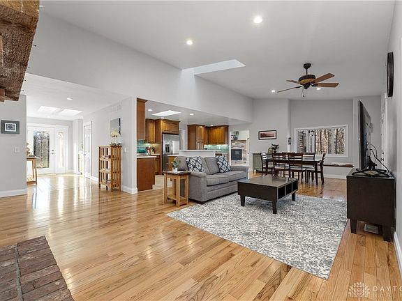What a unicorn this is! Located in Miami Trails in Loveland Schools, but not part of the HOA, this ranch home was fully remodeled & situated on 3.55 wooded private acres. Its like owning a private oasis in the middle of the neighborhood down a private driveway! The house is 2364 sqft not including partially finished bsmt, 3BR, 3 full BA, office/bonus room on main level that could easily be converted to a bdrm by adding a closet, has a 2 car garage, spacious deck & oversized screened in back porch. Some of the updates include hdwd flrs 2018, paint thr/out '18, new interior doors, casing & baseboards 2018, roof 2017, skylights 2017, full bathroom remodels in 2016 and 2020, full primary en suite bathroom remodel 2017, side deck 2024, 6 inch gutters trenched to the creek, connected gas 2017, Mervin windows on rear of house 2017, kitchen updated 2017, laundry area 2018. This home literally has everything, will not last long, don't miss it! Sellers need occupancy through first week in June.