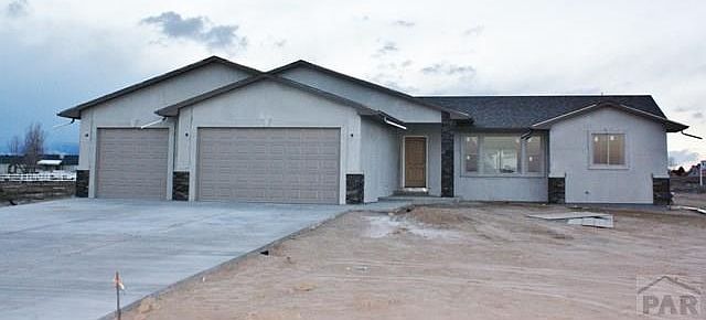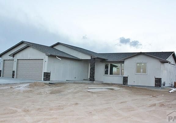 Another beautiful Adobe Construction Home! Photos are of actual home and similar home, floor plan will be the same. Outstanding new ranch style home close to the north shore entrance to Lake Pueblo State Park. Spacious, wide open floor plan with luxurious master suite. Stone ,oil rubbed bronze faucets,quiet setting, on demand hot water heater,stainless appliance package, granite counter tops throughout along with hardwood and tile floors, oil rubbed bronze faucets,quiet setting.. Deep 3 car garage plus a full unfinished basement. Great location! Builder can finish all or partial basement to fit buyers needs. Completion date February 2017.