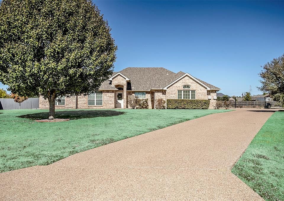 Beautiful custom home with country feel on over half an acre. Living and dining area have view of sparkling pool with rock waterfall. Oversized covered patio perfect for entertaining. Open floor plan with split bedrooms and study, spacious kitchen, breakfast bar, granite counter tops, refrigerator stays with property. Extra wide doorways in master bedroom and bathroom with pocketdoors. Master bathroom has Therapeutic walk-in tub and separate shower with grab bars. Large 22 x 13 out-building with electricity and window unit AC. Additional storage located on the rear of out building. Recreational vehicle parking with electric hookup. Fenced garden area with raised beds.