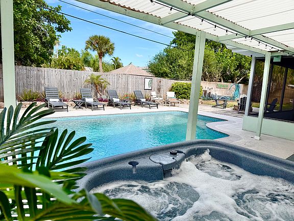 Welcome to your perfect beachside escape! This newly renovated 4-bed/2.5-bath home features a spacious open layout, a stunning new kitchen, and a large screened porch overlooking your private heated pool, hot tub, and lush backyard. Watch rocket launches right from your patio, all just a short stroll from the beautiful Atlantic beaches.