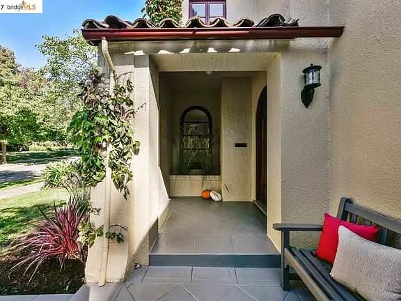 Exceptional 1920's Traditional with a classic center hall plan with gracious public rooms and an impressive staircase to the upper level. A magical home set back from the street, framed by a court yard, surrounded by lush gardens, level lawn, patio and park-like backyard that goes well beyond the fence. Lovely sunlit living room with barreled ceilings and two sets of French doors that open to private front and rear patios. Spacious kitchen has been lovingly updated, with a large stone island, pretty eating area adjacent to a family room that opens through French doors to the patio and garden. Upstairs are two generous bedrooms, a smaller bedroom that works well as an office or nursery, one updated bath with radiant heat. There is a perfect spot to add a second bath to the larger back bedroom that overlooks the backyard. Charmed Crocker Highlands location within minutes of the Transbay bus to SF, Crocker Highlands Elementary and conveniently located to Lakeshore and Grand Ave.