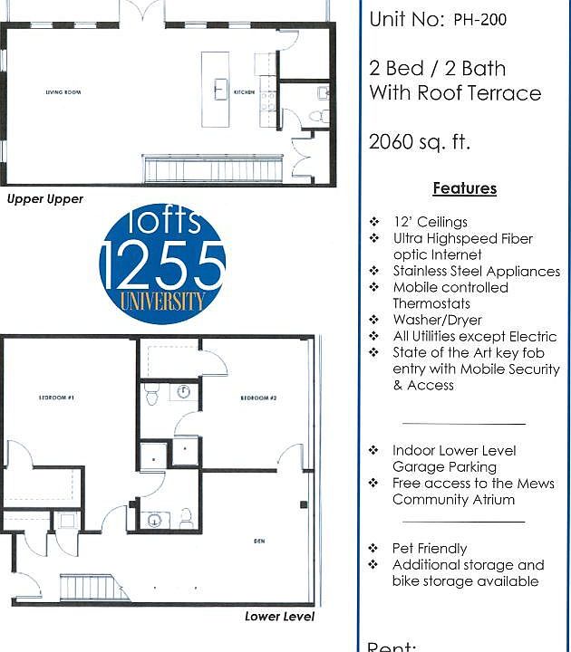 - Exterior features: 12` Industrial Loft Ceilings, Fiber Optic Internet 100mbps, Key Fob Access, LED Lighting, Mobile Controlled Thermostats, Mobile Secuirty & Access, Package Receiving, Pet Friendly, Stainless steel appliances, Sundeck, Window Treatments