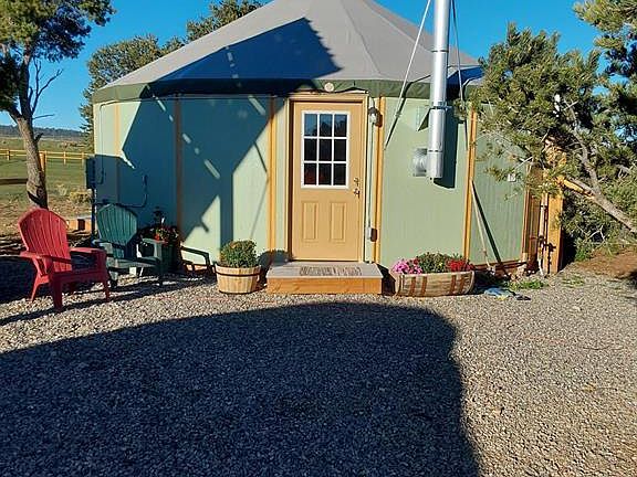 This is a horse owners dream with a beautiful 40'X 36' Timberline barn with 12' walls in the lower level and a loft for storage. There is also a 1/4 seasonal bathroom with a shower and a sink in the barn that is not heated and drains into a French drain. Corrals and pastures with cross fencing. About 18 acres is irrigated. Post and rail and smooth wire fencing. 4 seasonal ponds. Trails for horseback and mountain bike riding approx. 8 acres. Two Freedom Yurts which are top of the line. A well built combination chicken coop, hay & wood shed with a generator shed on the end. Two propane tanks that hold 400 gallons. There is currently solar power and a generator but electric is at the driveway entrance and can easily be ran to the homes. The possibilities are endless for this property plus there is fantastic hunting and fishing nearby. Turkeys, Mule deer and Elk frequent the property. You'll enjoy the end of the road privacy. There is also a 40 acre parcel adjacent to this property that is for sale if you desire more land and privacy.