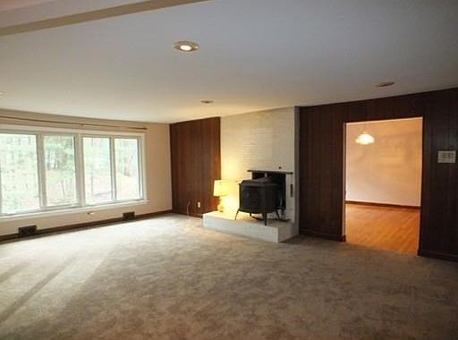 BACK ON MARKET BUYER COULD NOT GET FINANCING. Home sized to perfections for the family or if you are looking for one level of living. Large rooms abound this ranch with over 2000 square feet. Entertaining in this space would be a joy with the updated kitchen with dinina area, formal dining room with hardwood floors and exceptional living room with wood stove. Large master bedroom with an amazing amount of closet space and en suite. Two additional bedrooms perfect for guests or the children. The lower level has a finished family room and walks out to the above ground pool. Nature is in it's glory with the babbling brook located on the rear of the property. This home is awaiting it's new owner!!! Roof approx 10 yes
