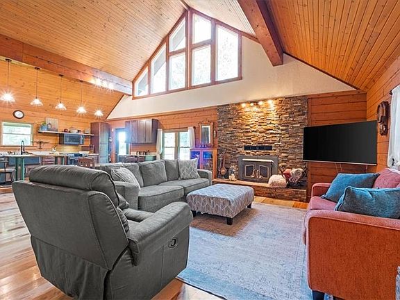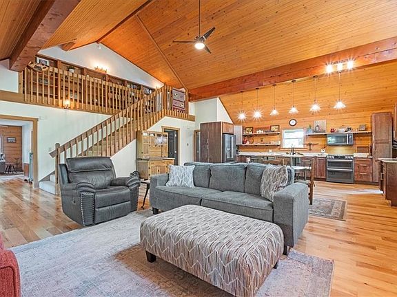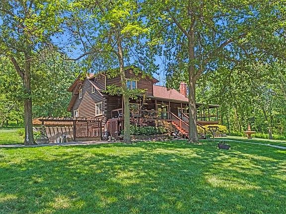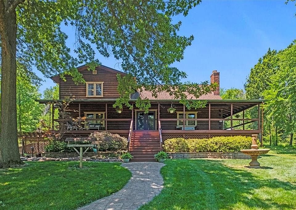 It's your LUCKY day! Enjoy cabin life right here in Kansas City!! Beautiful log cabin nestled on over 2 acres just MINUTES from Longview Lake! Enjoy the peaceful outdoors on the wrap-around porch. Dramatic vaulted ceilings in Great Room! Wonderful Open floorplan! Gorgeous NEW Hickory Hardwood flooring throughout main level. Kitchen features NEW Cabinets, beautiful granite counters and NEW GE Cafe appliances. Spacious Main floor Primary Suite complete with beautiful remodeled bath and awesome shower and walk-in closet. Open loft with tons of custom, built-in bookshelves. Finished WALK OUT basement with a basement bedroom, full bath, family room/exercise room and sauna! Take a relaxing break on the porch and enjoy the peace and quiet and waterfall feature in Koi pond. TWO large outbuildings (approx 40' x 30' and 30' x 30'). Boat launch for lake just around the corner. With living like this, you'll never leave home!!