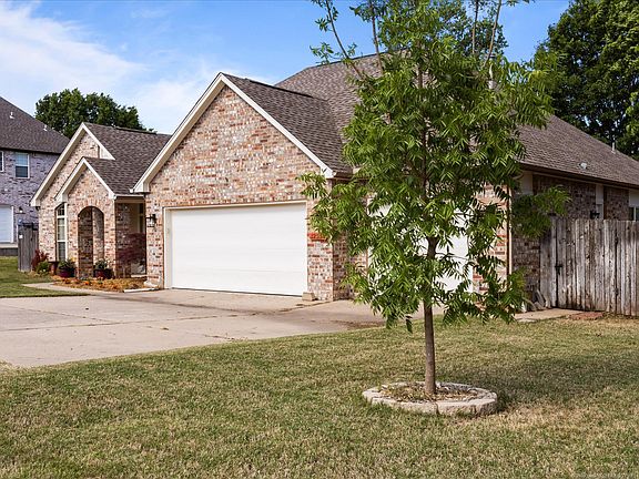 Jenks schools-one level. Pristine 4 bed/2.5 bath with versatile floorplan. 4th Bedroom could be den/office/formal dining or game room. Large garage with separate 3rd bay would be great for workshop or boat. Gorgeous park-like backyard on large lot with full privacy fence. Fish or canoe in the private neighborhood pond. Walking trails and playground. Don't miss this immaculate move-in ready home!