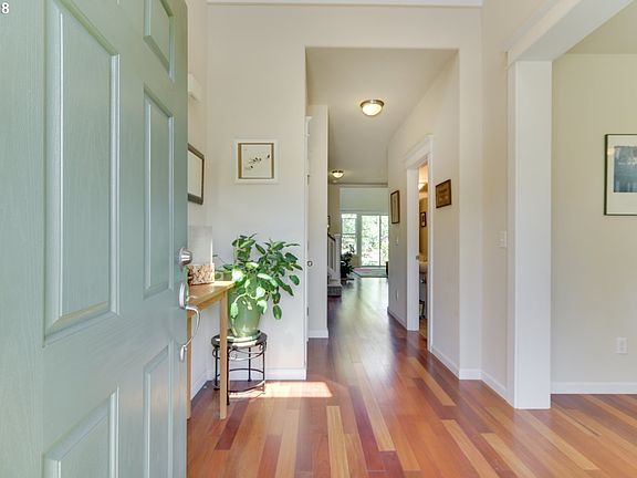 Customized Burgundy Rose Craftsman. Open & flowing floor plan w/ 18' ceilings, cherry floors, designer paint w/ an abundance of windows. 4 spacious beds, including mstr on main w/ walk-in closet, tub, dbl vanity & walk-in-shower. Open bonus space on upper. Lovely yard for entertaining. Huge low-deck, w/ Mt. Hood view, surrounded by trails and mature landscaping. Walk out your door to the ridge trail. Convenient location, New Seasons!