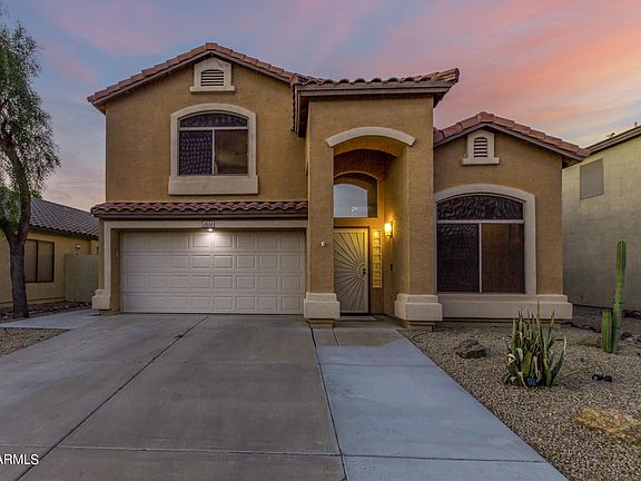 Location! Only 6 miles from Westgate or I-10 or I-101. Become the proud owner of this lovely 3-bdrm, 2.5-bath home in Wigwam Creek! The eat-in kitchen is a chef's delight, boasting, PRO-SIZED fridge/freezer, high end SS appliances, a coffee station with a pot-filler, custom shaker cabinetry with decorative tile backsplash, a walk-in pantry, and a breakfast bar for casual dining. Discover an inviting living room with soaring ceilings, a neutral color scheme, and attractive wood-look tile flooring. Upstairs, a cozy loft provides flexible space for work or play. The main bedroom features 2 closets, and a private bathroom. Enjoy sunsets in the backyard, showcasing a covered patio, natural turf, and a free-standing fireplace. Make this gem yours! Some photos have virtually staged furniture.
