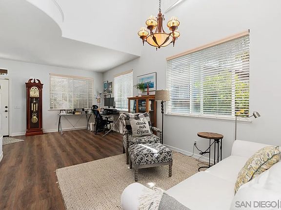 Checks All the Boxes! Great home in a great location. This 2-story Carmel Valley house has a plethora of amenities including 4 spacious bedrooms, 3 full baths, newer paint, newer luxury vinyl plank flooring, newer baseboards, ceiling fans, partial shutter window coverings, and even a wine cooler! As you enter, you are greeted with high ceilings and abundant light. A living room fireplace with elevated hearth creates the perfect evening ambiance. Moving past the dining room is the kitchen and main gathering area. The kitchen has a newer refrigerator, newer dishwasher, and newer microwave, granite countertops, and loads of cabinet space. The original owner opted out of the downstairs bedroom thus increasing the size of the great room immensely making entertaining family and friends a breeze.