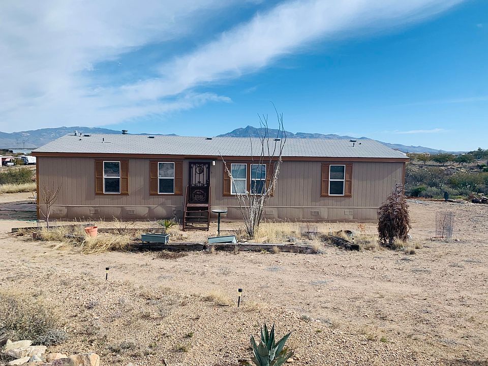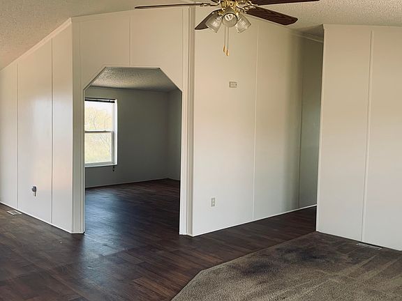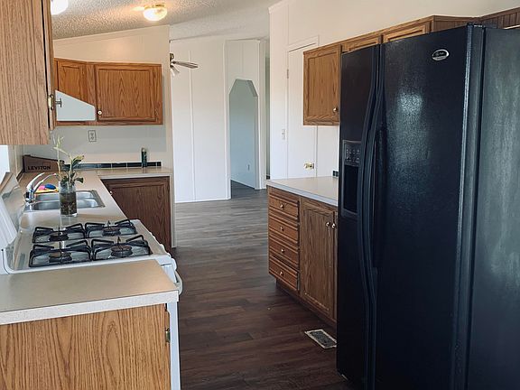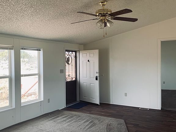 Palm Harbor widewide, split plan, 3 bedroom 2 full bath, extra room off the the living room could be 4th bedroom or separate media room. open floorpan with 2 dining areas, large living room. Master bath has split executive dual sinks, garden tub and separate shower, walk in closet and spacious master suite. One of the other bedrooms has a walking closet too. Views of the mountains ranges on this 1 acre property are absolutely gorgeous! New paint, AC, custom stairs and wrought iron front door. Enjoy the views on the deck facing east. Thanks for showing our listing!