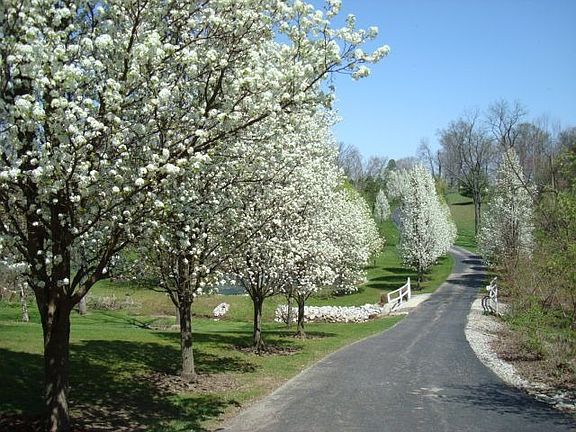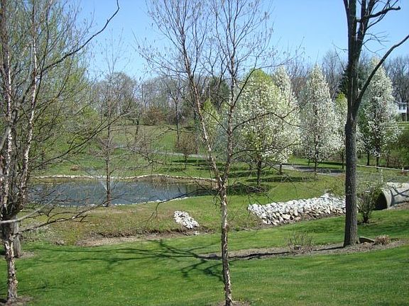 5.77 Rolling wooded acres w/ stocked pond! Pear trees run along both sides of the long driveway back to the home. Gorgeous contemporary Ranch w/ large 1st floor laundry w/ cabinets. Open floor plan, cathedral ceilings, Florida room w/ sliding doors to the deck, ceiling fans w/ remotes, fenced back yard, 1st floor den w/ built in shelves, great room w/ fireplace & view of pond, basement, & 3 car garage. Kitchen has Corian counters, island & stainless steel appliances. Huge master suite w/ French doors to back yard. Large master bath w/ high ceilings, soaking tub & tiled shower. For more information or for your personal showing contact The Mike Laemmle Team today at 614-594-0091 or http://www.SellOhioOnLine.com & http://www.BuyOhioOnline.com