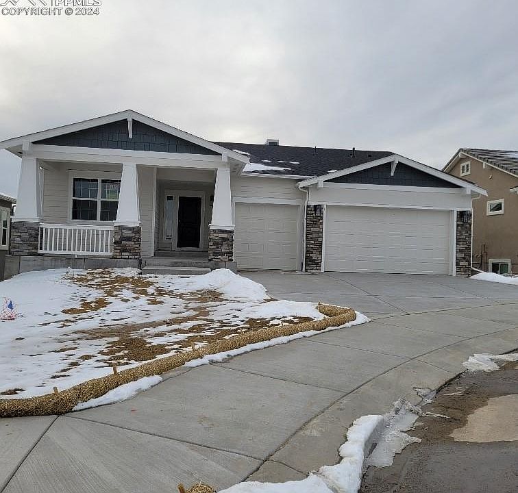 Ready now! Paradise ranch plan in Flying Horse. 5 bedroom, 4 bath, 3 car garage home. Traditional exterior with large front porch. Gourmet layout kitchen features knotty alder cabinets in a pecan finish, elegant Terra Sol Quartz countertops, and Kitchen Aid stainless steel appliances including 36" gas cooktop with hood. Eating spaces include formal dining room, large island and breakfast nook. The owner's entry from the garage showcases a built-in mud bench with cubbies and a laundry room with a convenient pass-through into the master bathroom. Spacious master bedroom features a barn door to the adjoining bath. The bath hosts a soaking tub, separate shower, and vanity with two sink. The walk-out basement has 1 ft. taller ceilings and features a rec room with fireplace and wet bar. There are 3 bedrooms in the basement, one of which is a junior master suite with its own bathroom and walk-in closet. Home comes equipped with a smart home package, air conditioning, and radon mitigation system. Seller incentives available.