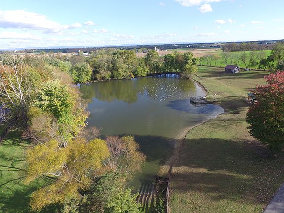 Beautiful "A" frame over looking a 1.5 acre fully stocked pond surrounded by hardwoods and serenity. Completely refinished interior with updated bathrooms, paint and flooring. New pex plumbing system with all new water heater, softener, air injected filtration system and new well pump. Upgraded electrical as well. 2 +/- acre fenced pasture with an outbuilding equipped with water & electric. Spectacular setting on 8 acres of fenced property.
