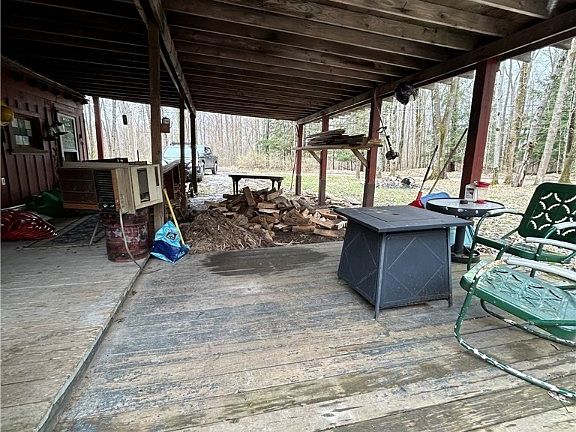 Secluded 3 bedroom, 1 bath Ranch home located just steps away from 4,227-acre South Valley State Forest and short drive to Alleghany Reservoir's Onoville Marina! Perfect for year-round short-term rental or outdoor enthusiast's home-away-from-home. Enjoy the sounds and sights of nature from the covered side deck. Once inside you will be greeted by the spacious front entry way and warmth of a wood burning stove. Large kitchen and living area provide plenty of space for entertaining. Large bedrooms offer plenty of room for guests. Outdoor access from 2 of the bedrooms provide additional entry points for privacy and convenience. Beautiful views from every window! Situated on 1.29 acre partially wooded lot with access to State Land that is most commonly used for hunting, hiking, horseback riding, and snowmobiling.