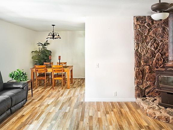 Nestled on a flat quiet acre this lower Banner Mountain home is only 5 mins from Brunswick shopping, restaurants and hospital. Private and quiet setting with low maintenance yard on a cleverly named street, sits this SINGLE STORY 3 bedroom 2 bath cabin. Exciting opportunity for your creative touch to make it your own. The living room includes a wood stove and a large window to allow for natural light. The den's stone fireplace gives a cozy feel to the space. The kitchen includes extra space for a breakfast nook or the option for more cabinetry. The trees add to the beauty surrounding the home for you to enjoy your coffee outside on the front porch. The home's single-story design ensures easy accessibility, enhanced by a convenient ramp that leads to the front door. The front of the home has plenty of parking for your boat, RV and toys in between all your outdoor adventures and guest parking galore. The home's buried electricity lines will give you peace of mind. The home features natural gas. Xfinity HIGH SPEED internet and CELL service add to the convenience of your new mountain cabin. Enjoy nearby lakes and rivers nature and wildlife.