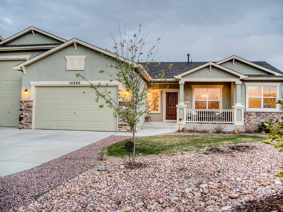 When you pull up in front of home you will be greeted by a wonderful open porch. Walking into the front door, you are instantly greeted with gorgeous hardwood flooring and an expansive living/dining/kitchen (an entertainer’s dream). The upgraded kitchen, featuring stainless steel appliances, a double oven, a granite island, a walk-in pantry, granite countertops, and rubbed bronze hardware. Make your way into the living room which features: a cozy sitting area with a gas fireplace right next to a formal dining room. Next, make your way to the private, main-level master suite which features: a 5-piece master bath, with a large soaking tub, double sinks, a separate stand-up shower with frosted glass for privacy and a walk-in closet. Finishing out the main level is 2 more bedrooms, full bath, laundry on main level and a beautiful staircase to the basement. Now, make your way downstairs to the fully builder finished basement featuring a large rec room, two more bedrooms, a full bathroom, and a storage room and a family theater room. Backyard has open views. This home is located in Meridian Ranch the community it has a YMCA w/a indoor and outdoor pool, fitness center, full basketball court and there all types of classes for both mom and dad and the kids. This home is also located in a Golf course community with miles and miles of walking trails, the Antler Creek Golf Course and the Creek View Grill! this home will not last and is absolutely not to be missed.