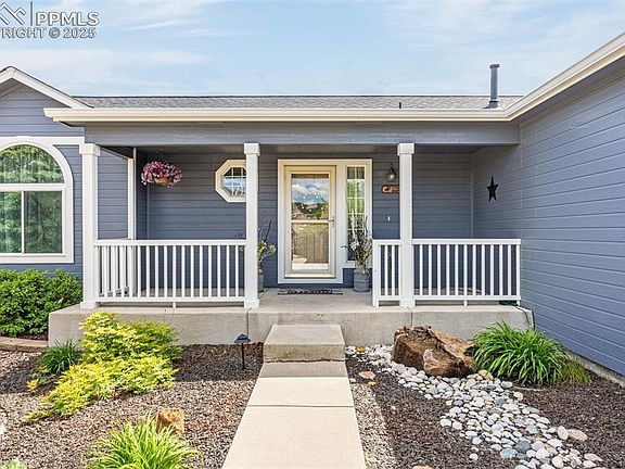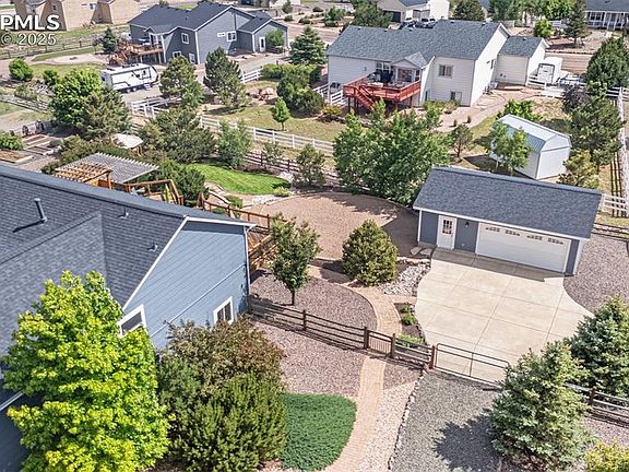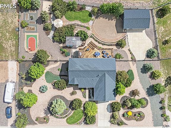 This is one of the most thoughtfully upgraded and well-maintained homes you’ll find in the area, offering a rare combination of space, functionality, and lifestyle. Situated on over half an acre, the property has been transformed into a private retreat that’s perfect for entertaining, relaxing, and enjoying the Colorado lifestyle to the fullest. The backyard is a true standout, featuring an oversized 40x14 deck with stunning Pikes Peak views (pre-wired for a hot tub), a walk-out patio, basketball court, gazebo and pergola areas, a designated space prepped for a future playground or swingset, a tetherball court, and multiple raised garden beds ready for your summer planting. There’s also a second driveway that leads to a spacious 2.5-car detached garage, fully equipped with a garage heater, 100-amp electrical service, and 240v plugs, making it perfect for a workshop, extra vehicles, or recreational gear. Both the home and the garage have Class 4 impact-resistant shingles for added durability and peace of mind. Inside, you’ll find a light, bright, and updated interior with no carpet at all, designed for low-maintenance living. The kitchen and bathrooms have been beautifully redone, and the main level offers three generous bedrooms, including a primary suite designed as a true owner’s retreat with a luxurious soaking tub and separate walk-in shower. The fully finished walk-out basement brings in tons of natural light through large garden and walk out level windows, creating a bright and open feel you don’t always get in a lower level. It features a spacious fourth bedroom with two closets, a dedicated craft room, a gym or flex space, and a separate storage room. All windows have been replaced, and the home’s front faces north, ideal for keeping your driveway clear in the winter and soaking up sunshine in the backyard all day long. With only one owner who has poured their heart into every detail, this home is truly one-of-a-kind and move-in ready.