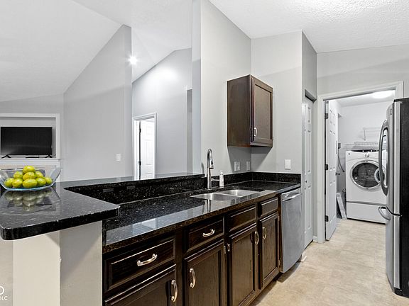 This 2 bedroom is an amazing unit: 2 full bath \ 1071SF \ 2nd floor (no one above you) \ end unit (more windows) \ laundry off the kitchen \ extra storage closet in the building. Fabulously updated kitchen with granite countertops, stainless steel appliances and dark stained cabinets! Open floor plan connecting the kitchen, dining area and living room for effortless conversations as you entertain your friends and family. Vaulted ceilings in the living room and primary bedroom create an airy, spacious feel, enhancing natural light and making the rooms feel more open. Want MORE? Both bathrooms are updated. Bedrooms are split to provide you with privacy and both have large walk-in closets. There is a balcony to let fresh, cool, summer breezes flow in and a cozy fireplace for winter warmth! Timber Creek has a clubhouse with weight room, pool table, gathering space and an outdoor pool and there are tennis courts on property. Lastly the community is a short walk to the Monon Trail, summer gazebo music concerts, Carmel Arts District, Carmel dining and The Palladium. This home offers the perfect blend of comfort and convenience.