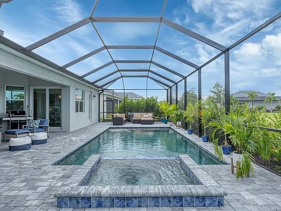 Stately and stunning, this Napoli II model, estate home is located in the premier, resort-style community of Wellen Park Golf & Country Club, with a deeded golf membership—just pay a cart fee to play! Situated on a premium private lot with serene nature preserve views and nestled on a quiet street, this 4BR/2.5BA residence offers the ideal blend of elegance, comfort, and low-maintenance living. Enjoy impact-rated windows and sliding glass doors for your peace of mind, wood-look ceramic tile flooring, soaring ceilings, and a spacious 3-car side-load garage. The open-concept layout flows seamlessly from the chef’s kitchen—featuring quartz countertops, custom cabinetry, and high-end appliances—into generous living and dining areas. Pocket sliders lead to a beautiful outdoor oasis with a heated pool and spa, perfect for entertaining or relaxing in private. The serene and relaxing primary suite is a true retreat with an abundance of space with a reading nook, and a clear view French door leading to your luxurious pool and have blinds between the glass for privacy, and an ensuite bathroom just steps away. The spa-like bathroom includes a soaking tub, large shower, and dual vanities. The 4th bedroom is an added bonus with double French doors which can also be used as den or home office. Two additional guest bedrooms are thoughtfully separated for privacy, ideal for when friends and family come to visit! Living in Wellen Park Golf & Country Club means enjoying resort amenities, including an 18-hole Gordon Lewis-designed golf course, heated community pool, tennis, pickleball, bocce, tiki bar, salon, spa, state-of-the-art fitness center, dog park, social events, and miles of walking/biking trails. Low HOA dues include your golf membership, gated access, lawn maintenance, irrigation water, cable, and internet. Wellen Park Golf & Country Club offers a vibrant lifestyle with world-class amenities, Located just minutes from downtown Wellen Park include dining, shopping, concerts, yoga on the great lawn, and CoolToday Park, home of the Atlanta Braves spring training. Venice’s pristine beaches and historic downtown are just 20 minutes away. Enjoy the ultimate Florida lifestyle with peace, tranquility, and world class amenities all in a maintenance-free, gated community. Just bring your bathing suit—this executive home is ready for you! NOTE: CDD fee is included in the taxes, and your golf membership is included in your HOA dues. HOA fee also includes basic cable and internet. Welcome Home to Wellen Park Golf & Country Club—where every day feels like a vacation!