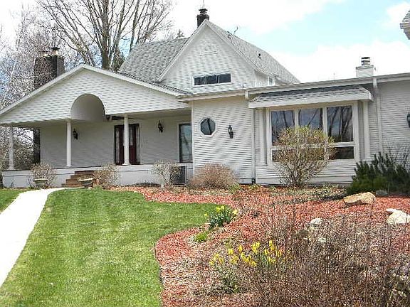 Huge Country Estate w/ 5379 sq ft on main home (per appraiser) and fabulous guest house w/ 2br, 1.5 bath (wheelchair accessible), ideal for in-law or rental. Main house has 1st fl master w/ fpl, private bath & lots of closet space. 4 bdrs up includes a 2nd master suite. The huge kitchen has cherry cabinets, 2 center islands & butler pantry. A welcoming front porch leads to marble foyer, formal LR/DR, office, great room w/ stone fireplace and sunroom. Main home has many updates. Guest home is brand new with radiant heated floors. Very Nice! Professionally landscaped on a beautiful wooded setting w/ rural ag zoning & Stephen Mack school district. New Septic '08'. New well & well pump '16'