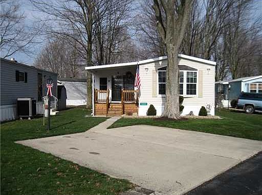 Very well kept 2007 home located in West Lake Village. This two bedroom, two bath home is located just across from Lake Loramie. Fishing, biking and hiking trails are just steps away. The three season room was added along with two sets of custom made steps. The current monthly fees are $220. This includes your lot, water, sewage and cable. Two concrete parking spaces for this home are located in front of the lot.