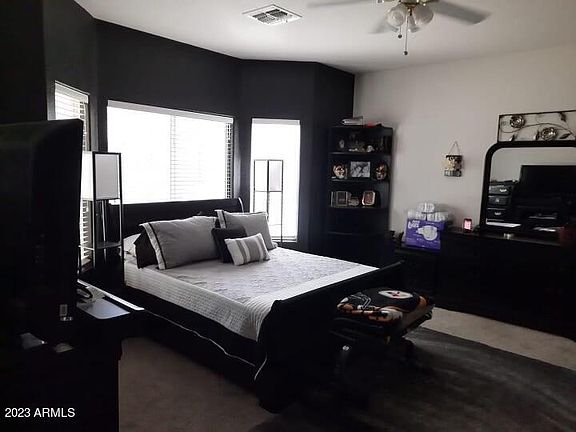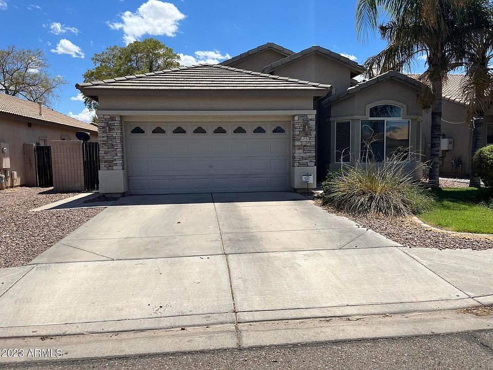 This fantastic property in Coldwater Springs, Golf club community, is ready for a new owner! Recently equipped with a new A/C, new hot water heater, newer flooring and more. Open concept living with a split floor plan. The kitchen offers dark cabinets, eat in dinning area and a large raised island, with room for seating. This flows right into the living room with built in shelving and a cozy fireplace, for those cool desert winters. The large owners suite has a nice sitting area, and en suite with large walk in shower and dual sinks.