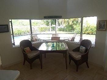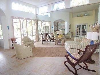 Well maintained, neutral colors, magnificent views across golf course towards 'Big Blue' preserve. Custom mirrors in living room, French doors to dining room, built-in shelving/storage in family room, upgraded bedroom carpeting. Bahama shutters in living room and master suite. Light and bright throughout. Gated community. HOA fee includes exterior painting and roof cleaning, plus yard maintenance. Bank approved at $375,000