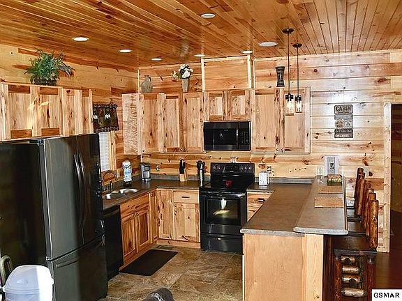 WOW FACTOR! FIRST TIME ON THE MARKET, BREATHTAKING VIEWS OF MT. LECONTE, AND INCOME PRODUCING 2BR CABIN WITH LOFT GAMEROOM. This elegant cabin being sold fully furnished is sure to impress from the walls of glass to take in the views, the open floorpan with vaulted ceilings, or the expansive decking to relax and enjoy nature. Interior features include woods walls, and ceiling, and a spacious kitchen with custom cabinets, snack bar, and stainless appliances. Open living room with upscale furnishings, and a stone fireplace for gathering. Master Suite features an oversized bathroom with custom tile throughout with stone, double vanity with raised sinks, spacious walk in glassed tiled shower, and a modern free standing soaking tub. Loft game room with pool table, poker table, and a timber top wet bar. Great room/entertainment area with sleeper sofa or make into a theatre room! Also, you could add a bunk room in the loft if you're looking for additional sleeping space. Walk in laundry room. Enjoy the bubbling hot tub on the private deck area or take a swing on the wooden porch swing. BONUS: This cabin is wired to be a "smart cabin" with satellite radio available in the five main living spaces -each individually controllable. Also. A security system with four cameras and 1TB DVR and can be accessed by cell phone. This cabin is top notch and only minutes to downtown Gatlinburg, the Smoky Mountains National park, Dollywood, and Pigeon Forge. This is a must see! **MAKE SURE TO CHECK OUT THE 3D WALK THROUGH VIRTUAL TOUR WITH FLOOR PLAN AND GET YOUR OWN VIRTUAL WALK THROUGH TOUR!
