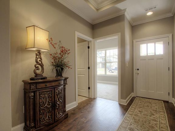 POPULAR BRADLEY PLAN! Great covered porch with rear lot that backs to woods. Maintenance free community so this is easy living. Plan your travel and let the HOA take care of your lawn. 3 bedrooms on the main including the master. Spacious great room that is open to the dining area and kitchen. Island offers seating and great prep space. Bonus room or 4th bedroom up with full bath and walk in closet. Tons of walk in storage. Radiant barrier sheathing and tankless water add to the efficiency of this wonderful home. Upgraded appliance package. Beautiful handscraped wood flooring. Tile in all the baths plus tile shower in the master.