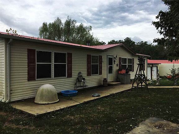 Saddle up and take a ride down to this one level home with 3 bedrooms and 2 bathrooms. Home comes handicap accessible with custom master bathroom which is fully equipped with lowered sinks, widened doors, and a very large walk-in shower. This 5 acre property also includes a stable which contains three 12 by 12 stalls, a hitching post, horse shelter, hay storage, two extra storage buildings, a two car detached garage with electricity, and a detached single car garage. Owners will allow for new carpet and paint. Washer and dryer do not convey.