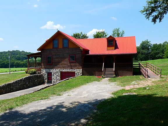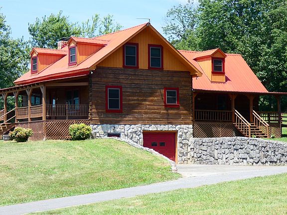 Minutes from downtown Lynchburg!!! 3 BR/2.5 bath log cabin sitting on 10.56 acres in the beautiful hills of Lynchburg. LR has vaulted ceiling w/wood burning fireplace. Large master BR with full bath, double vanity on the main level. New windows throughout. Two upstairs bedrooms w/ full bath. Centrally located half bath on main level. Lots of closet space. Basement has garage, storage areas, utility and plumbed for bath also has Hardy Heater. Front/side covered porches to enjoy the outside views.