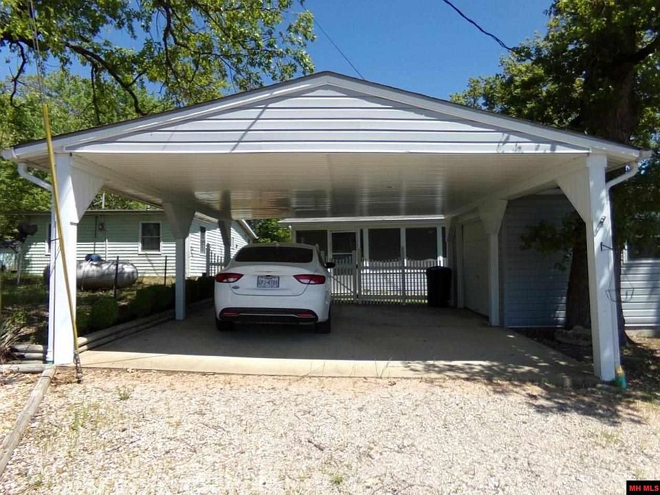 Lake Cabin Getaway! Bull Shoals lake and boat launch only ¼ of a mile away. New shingles on roof, end of 2019. Fully furnished with new amenities such as, shower/tub insert, washer/dryer, and 65" flat screen TV. Property adjoins the Corps of Engineers property. Has a 13'x14' workshop with garage door attached to the 2 car carport. Fenced yard, city water, 256'sq ft sunroom, and is on a paved road.