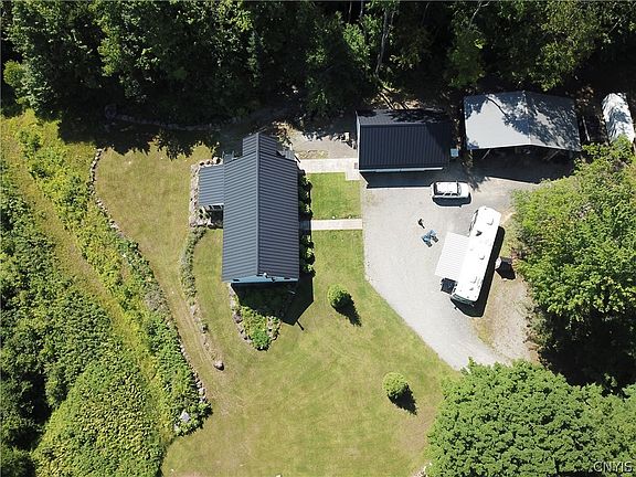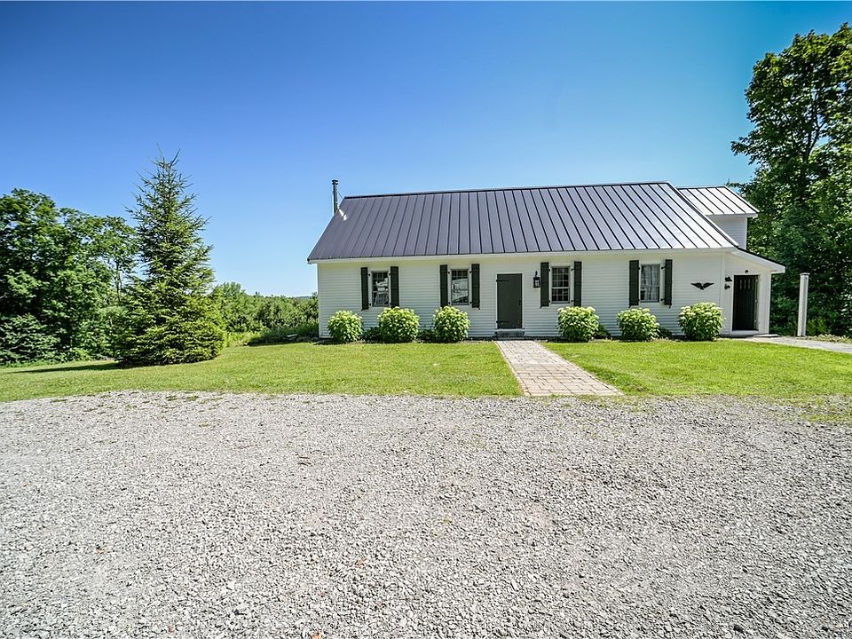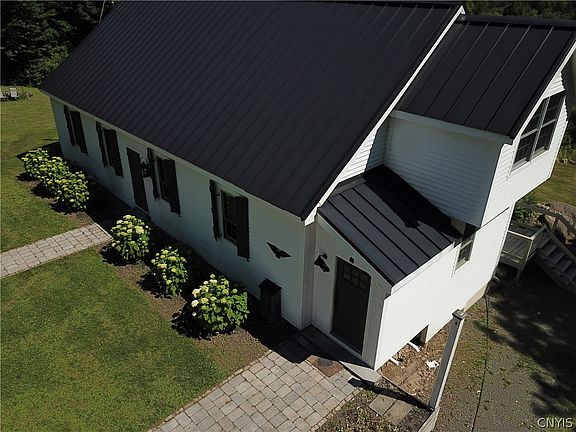 Let me introduce you to 1256 Dairy Hill Road in Newport New York, a private, but not isolated, 1,847 square foot custom built, timber, peg post and beam cape. An easy 35 minute commute to Utica, Wolfspeed, the new Mohawk Valley Hospital, and 40 minutes to Griffiss business park and Rome Central but front and center to the beautiful vistas of the Adirondack Mountains foothills. Set on a less traveled' road on 5.2 acres, with comfortable distances between neighbors. The property is surrounded by Adirondack Pines with the idyllic sounds of the fast running creek to the right. The rear border of this property is 687 acres of 'forever wild' land. Opening the door to the main living area, you are immediately drawn to the rustic feel of an Adirondack Lodge yet with a lighter, more modern vibe of a contemporary home. Although the structure was built in 1995, it was reimagined and remodeled in 2013. Only quality construction materials were used Standing seam metal roof, new septic, new electric, insulation, replacement windows, on demand hot water and fiber optic high speed internet to name just a few of the amenities this home has. Escape to a place designed for relaxation....your place!