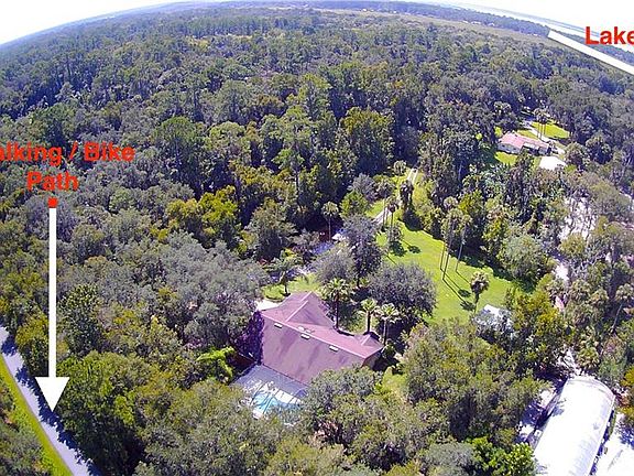 Gorgeous 2+ acre Enterprise property with mature landscape, pond, and all within a few short miles to I-4. This quiet and private property is breath taking with beautiful palm trees and access to the East Central Rail Trail located at the rear of the property for biking/jogging/walking. The open kitchen with skylights in the high cathedral ceilings allows the natural light to brighten the center of the home while cooking or entertaining. The dining room, living room and Florida room look onto the screened in pool. This split floor plan gives the master bedroom privacy while the remodeled master bathroom has a granite counter with dual sinks. There's a his and her walk in closet on either side and a remodeled sunken shower with two shower heads. Enjoy a peaceful walk on the property, sit near the pond or walk across the street to the nearby park that offers tennis courts, a basket ball court, playground and soccer field with nets. If you need to escape onto Lake Monroe there are two boat launches to choose from. One is within the park across the street and the other is a mile down the road catering to larger boats. Lake Monroe leads to the St. Johns River, local springs, intercostal and Atlantic Ocean.