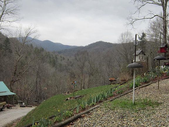 JUST REDUCED - Beautiful long range views with over 3 acres, this home is privately located near Lake Nantahala and borders forest service. The home has living room, kitchen, two bedrooms and 2 full bath as well as a loft for storage/sleeping and addiitonal room which can be used for an office. There are decks to enjoy the outdoors and the views. There are two covered buildings to house cars, workshop, tools, etc. as well as a covered area for cars next to the home. In additional there is a rustic one room log cabin which will remain furished. View, unrestricted, borders forest service and overlooks natural Nantahala River - it has it all.