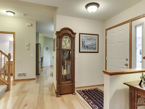 Immaculate 1 owner 2 BR, 3 Ba townhome with new hand scraped hickory flooring throughout the living, dining and kitchen. This side/side townhome has main flr living and a 4 season porch with see through gas fireplace. Upper level has an open loft, full bathroom & bedroom. This lovely home sits on cul de sac with private patio overlooking wildlife. New SS appliances in the large eat in kitchen. Close to shopping, parks and only minutes from St. Paul. Small Assoc in great location!